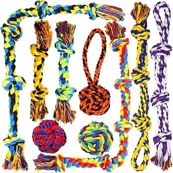 Giocattoli da masticare grandi e resistenti per masticatori aggressivi, kit di giocattoli per cani di taglia media, 5 nodi, in cotone indistruttibile, per dentizione, giocattoli da masticare, set di 9