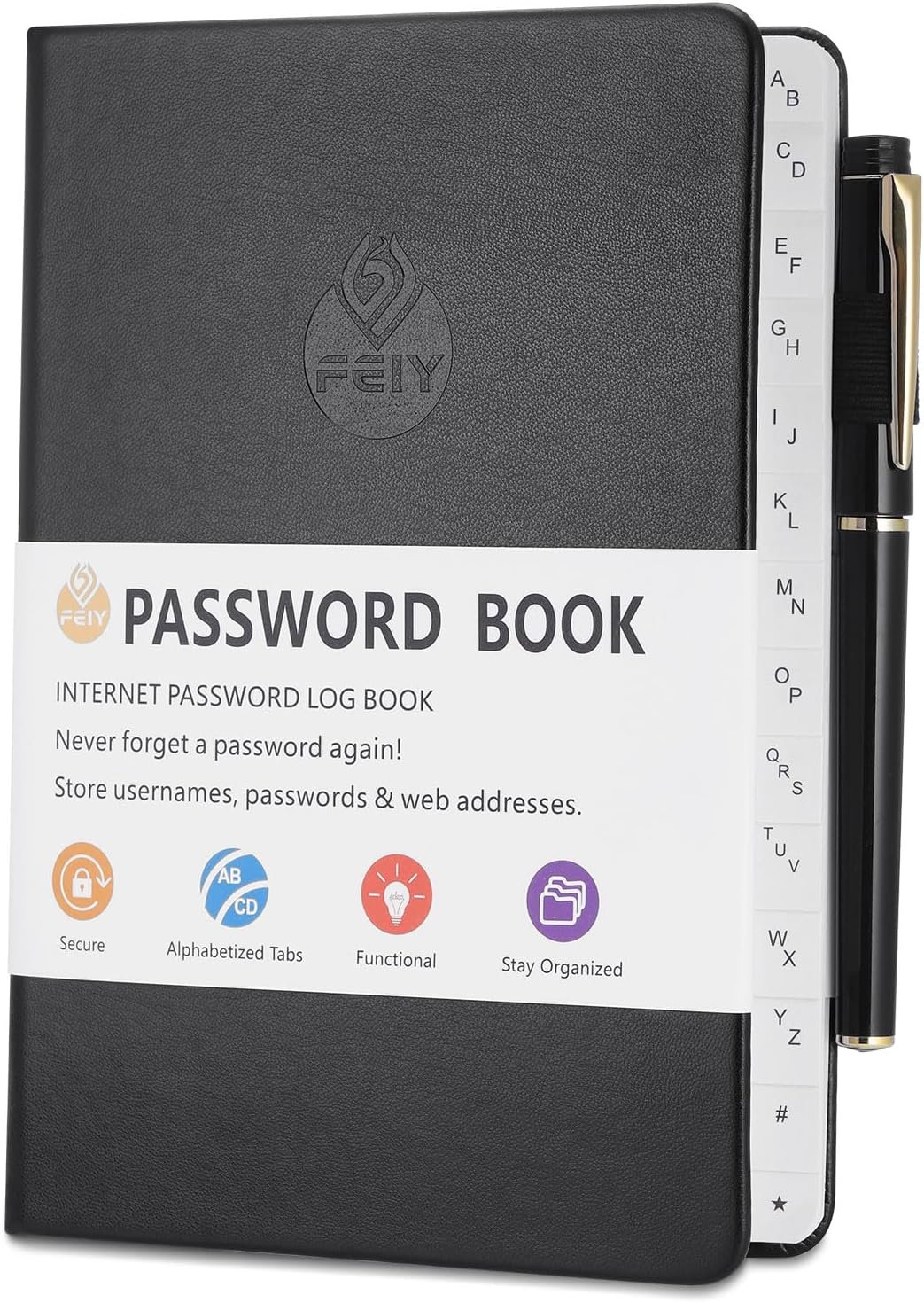 JIANTA Quaderno delle Password, Password Book Alphabetical with Tabs A-Z Index, Taccuino Address Book, Rubrica, Tascabile, Copertina Rigida, Organizer per Password, 13 cm x 19 cm, Nero