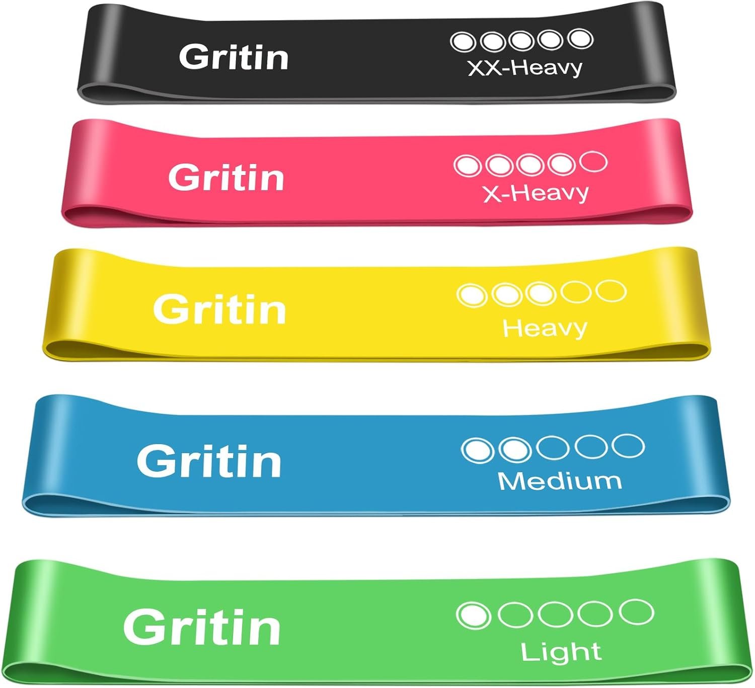 Gritin Elastici Fitness, [Set di 5] Elastico Fitness con 5 Diversi Livelli di Resistenza, Fasce Bande Elastiche Fitness con Borse Portaoggetti, Elastici Palestra per Crossfit, Yoga, Pilates