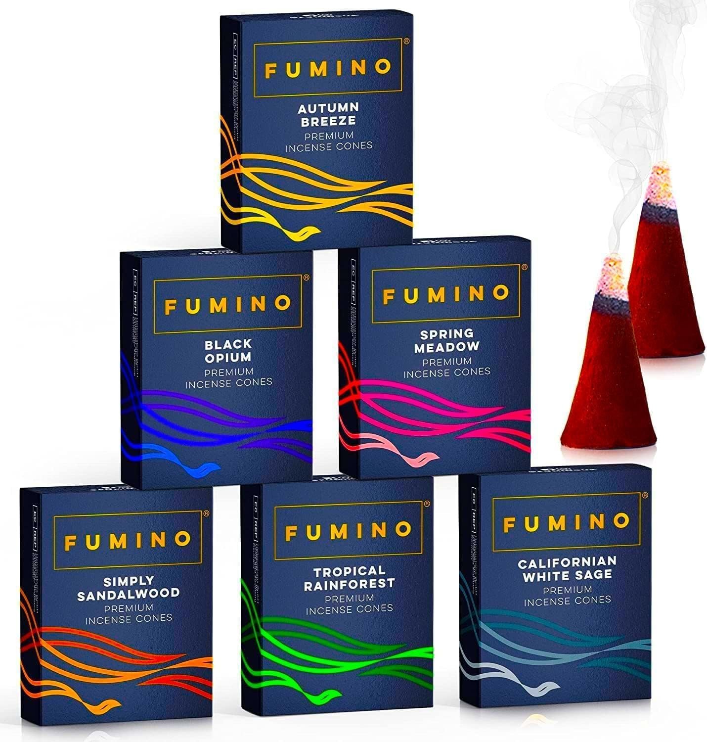 Fumino Incenso Coni Essenziale Multipack 6 Scatole 120 Coni Incensi Naturali Masala Agarbatti Fragranza Profumata Incenso Meditazione e Relax, Decorazione Casa e Ambienti