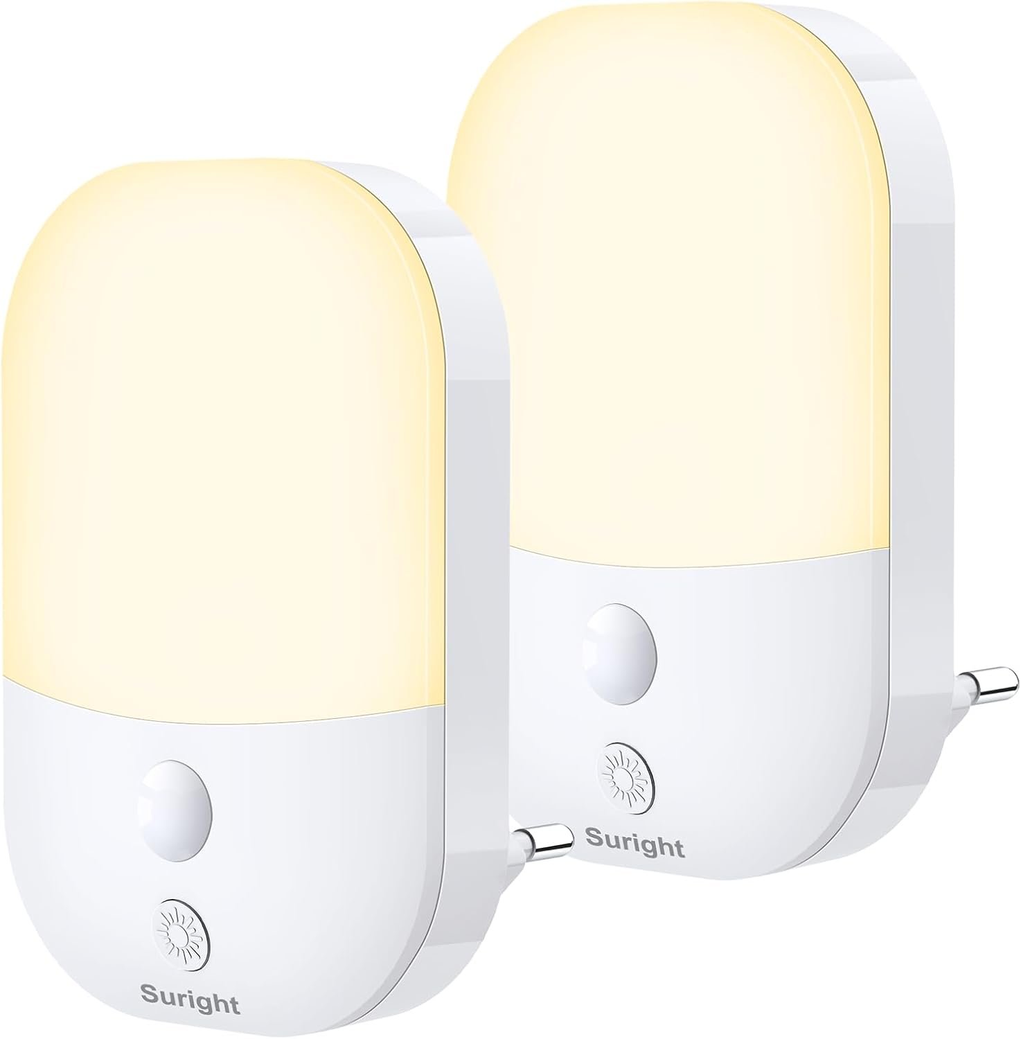 Luce Notturna Bambini, [2 Pezzi] Luce Notturna LED 5 Livelli Luminosità con Sensore Crepuscolare, Luci Notturne da Presa per Camera dei Bambini, Bagno, Corridoio, Cucina, Scale, ABS, Bianca Calda